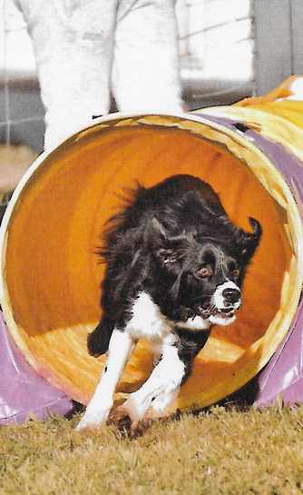 Le hooper est une activité douce où les chiens évoluent sur un parcours fluide composé d’anneaux, de barils, de portes, de couloirs et de tunnels.